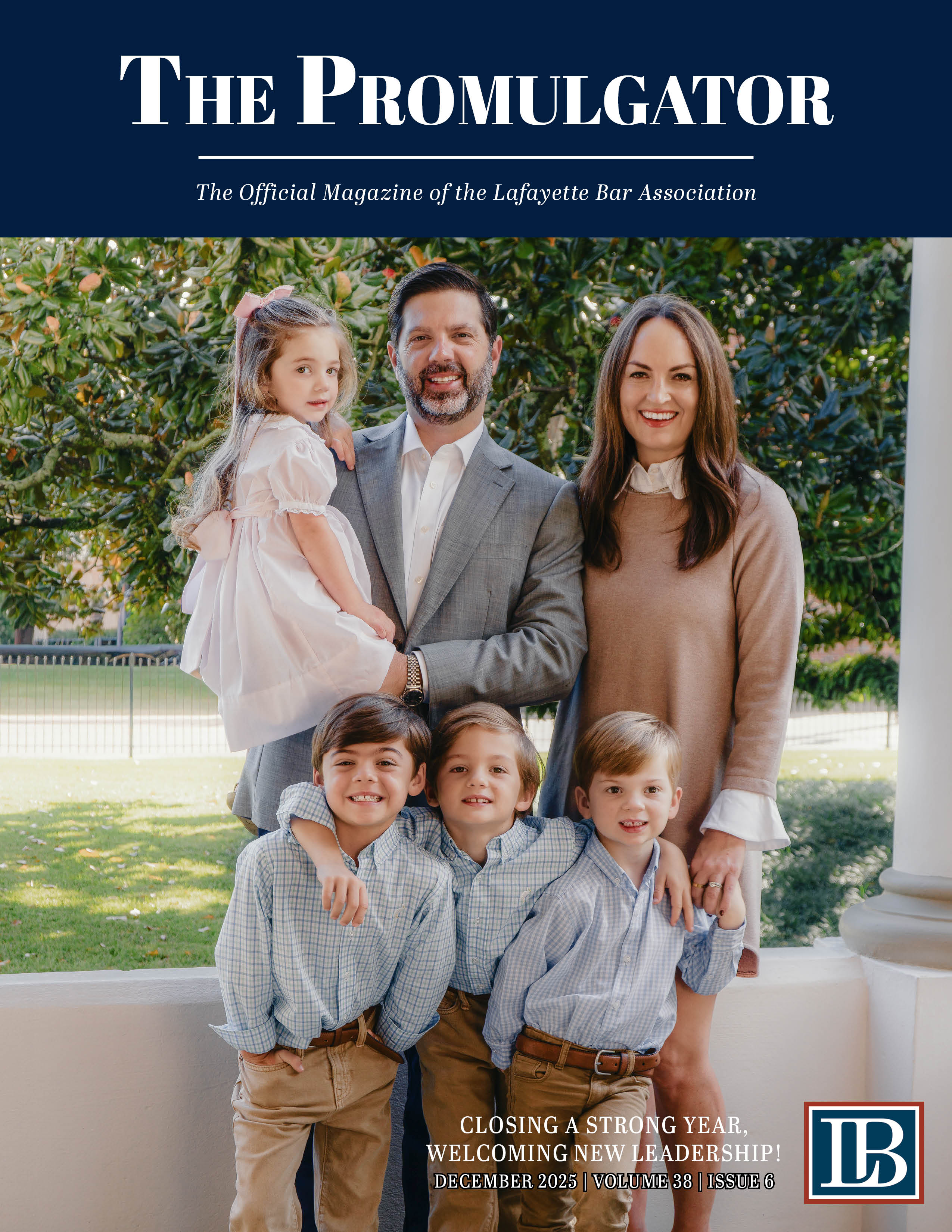 The PromulgatorThe Promulgator is published six times per year by the Lafayette Bar Association. It serves as the premier legal magazine providing substantive and topical information to the legal community. The Promulgator has an audience of over 1000 member attorneys and judiciary (including paralegals, legal secretaries, office managers and staff). Request an advertising packet from LBA Marketing or email [email protected] 337-446-2203.